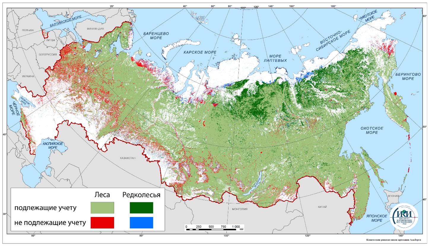 В ИКИ РАН уже несколько десятилетий разрабатываются методы и технологии работы с данными спутникового мониторинга для изучения состояния лесов из космоса. С их помощью можно оценивать площади, которую занимают леса, их состав и состояние растительности, повреждения, которые наносят лесам вырубки или природные деструктивные воздействия, в первую очередь пожары. Важнейшее и относительно новое направление этой работы — оценка вклада лесов в общий баланс углерода, а именно того объема углекислого газа, который леса поглощают или выделяют обратно в атмосферу. Так, по оценкам, сделанным с помощью данных ДЗЗ, среднегодовое нетто-поглощение СО2 всеми лесами России в 2002–2023 гг. составило 1.6 млрд т в год.