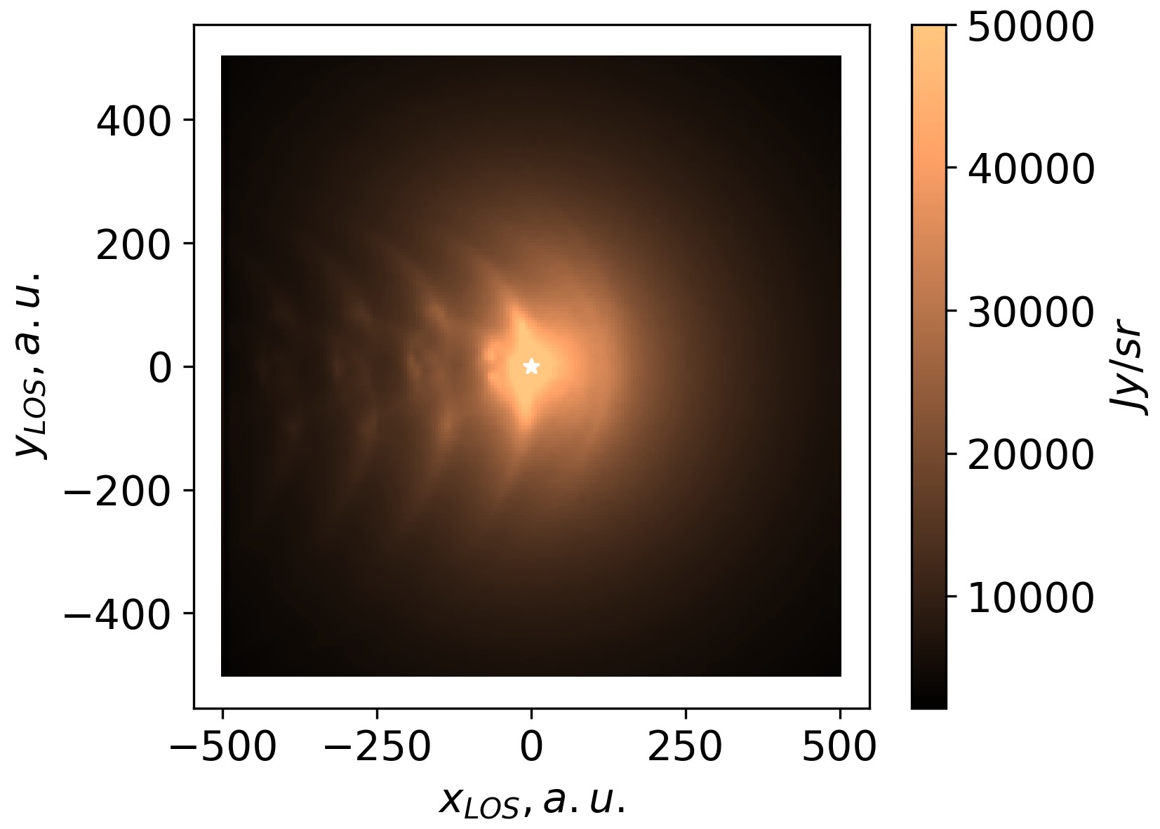 Полученный в результате моделирования «инфракрасный портрет» Солнечной системы показывает её вид для внешнего наблюдателя.